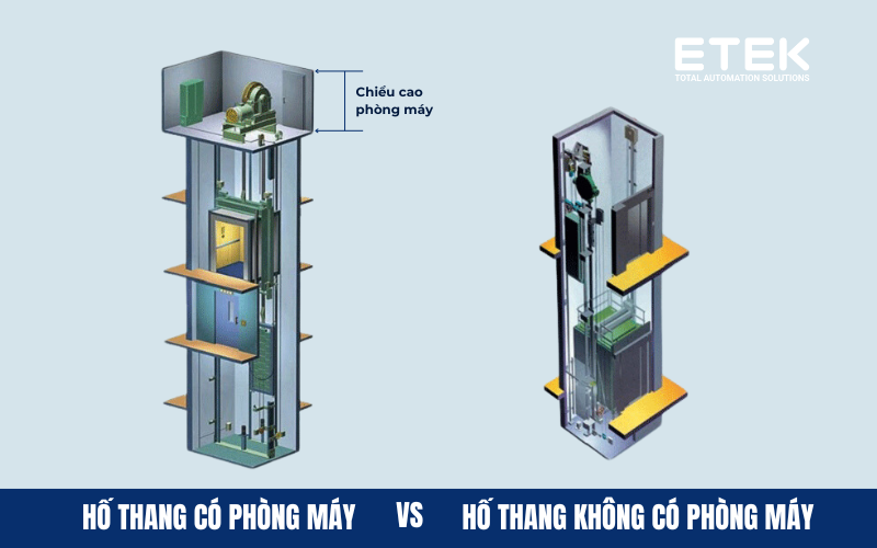 Thang nâng ô tô động cơ kéo cáp có 2 loại: Có phòng máy và không phòng máy